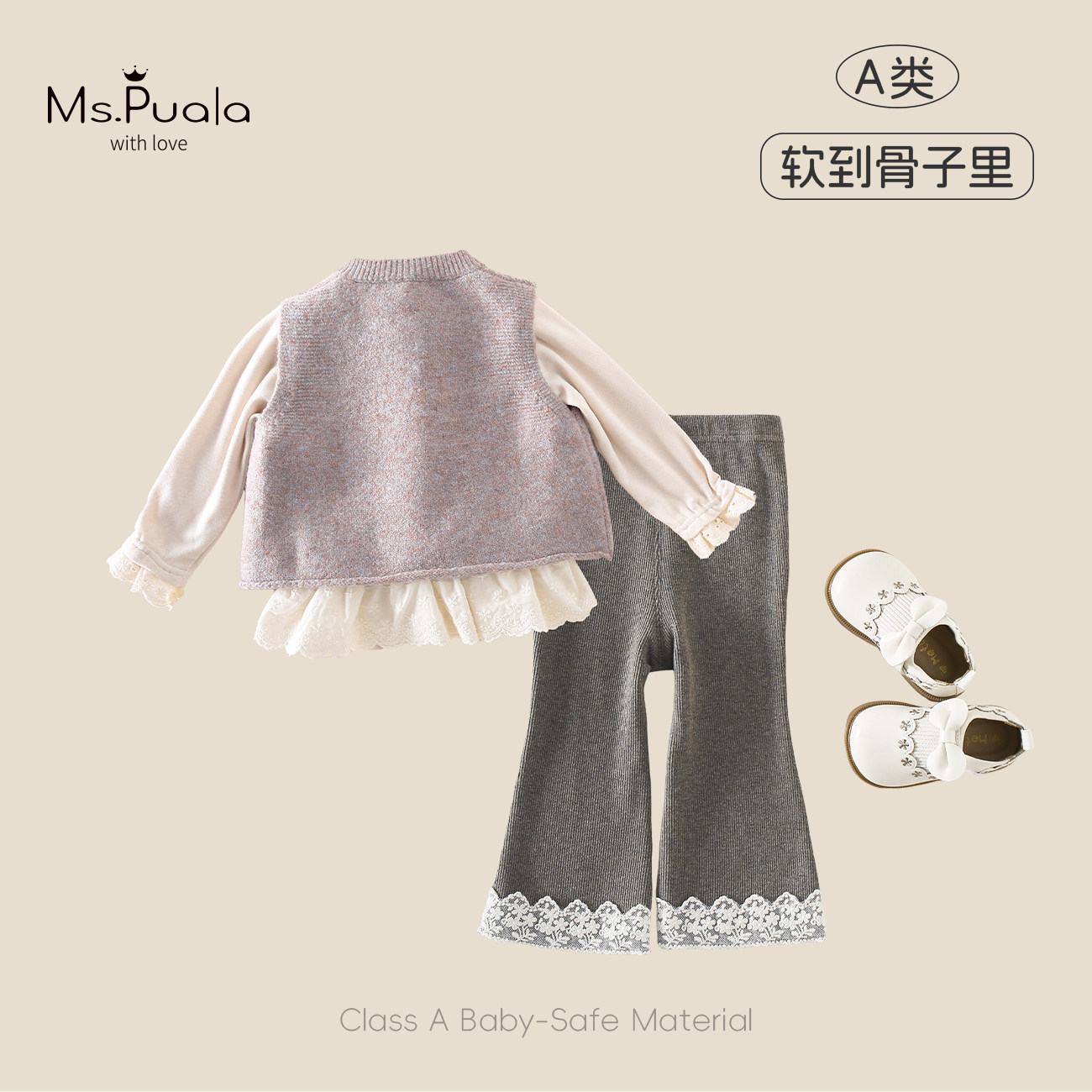 开春Ms.Puala女童宝宝套装春季马甲打底衫打底裤婴幼儿韩系三件套