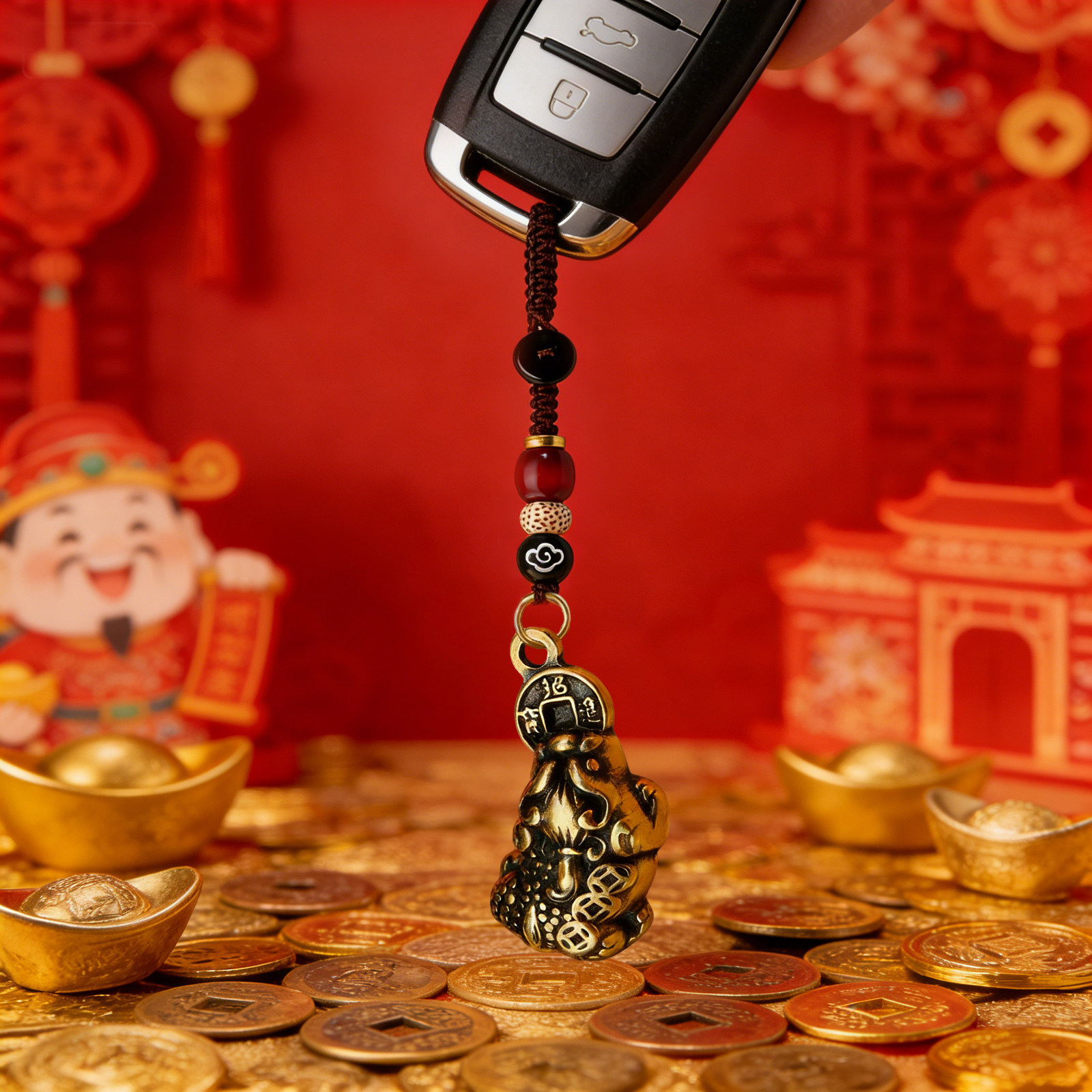【肥貔貅】真黄铜吞金暴富肥貔貅挂件钥匙扣 越磨越亮