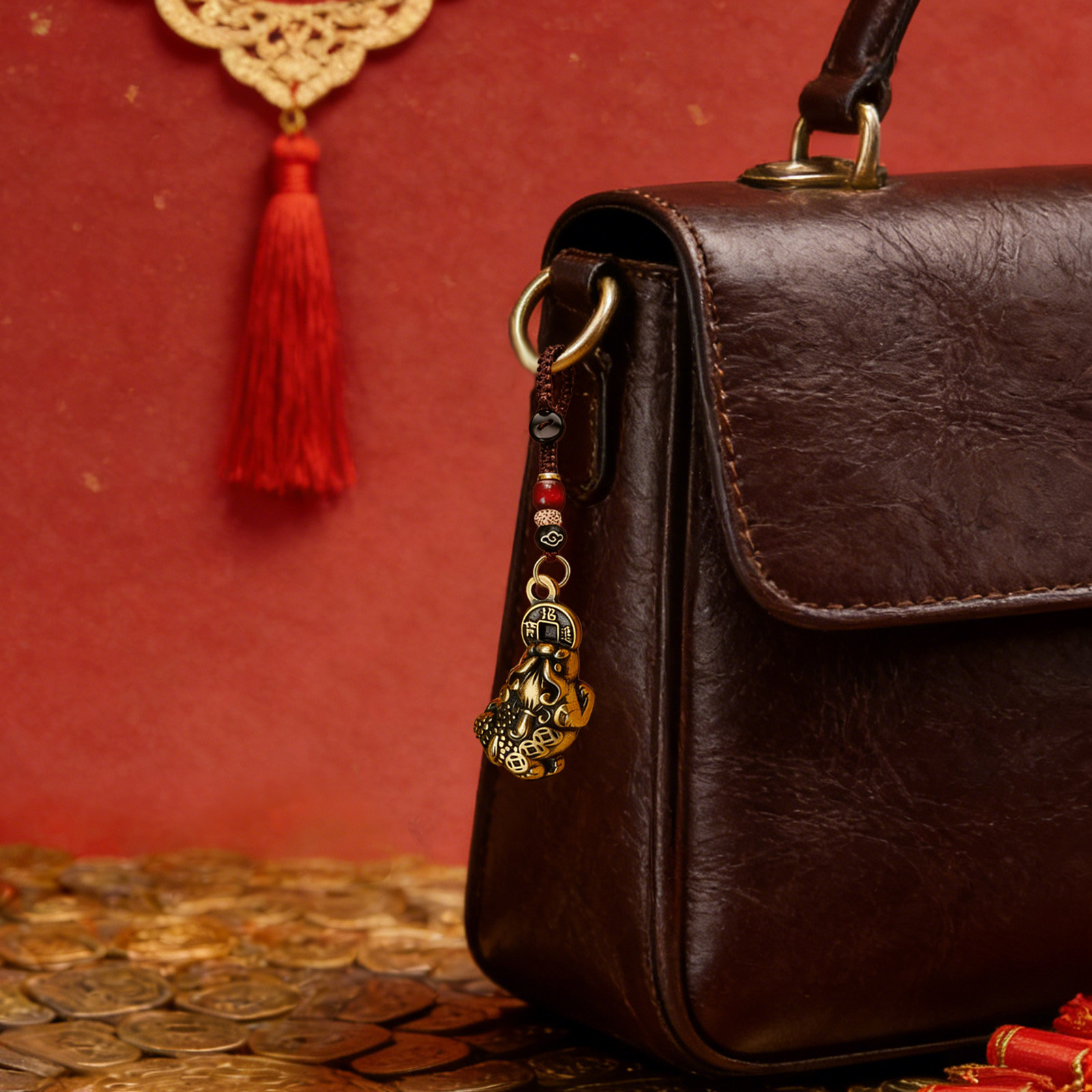 天然菩提钱袋手机链挂件情侣高档汽车钥匙扣招财福袋包挂饰品男女