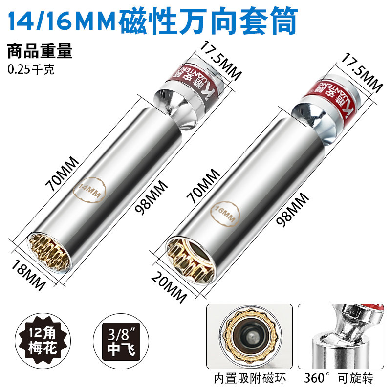 汽车火花塞拆装工具14mm 16mm火花塞套筒加长磁性万向专用套筒头