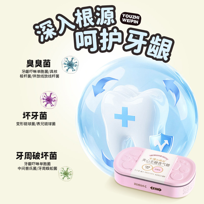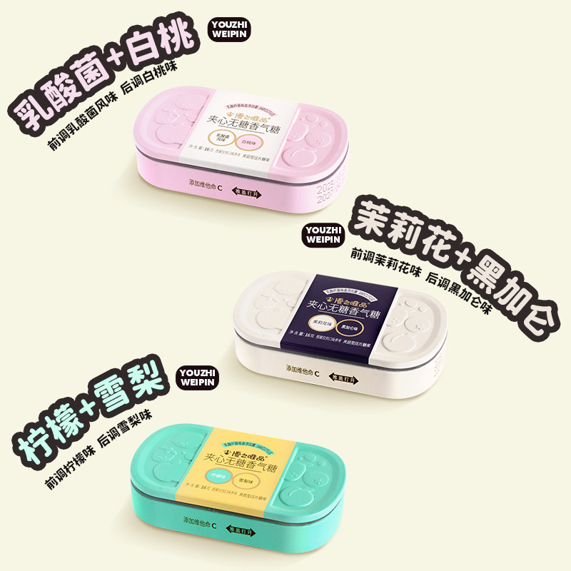 优之唯品夹心薄荷糖益生菌口腔异味清新持久含片无糖零食香气