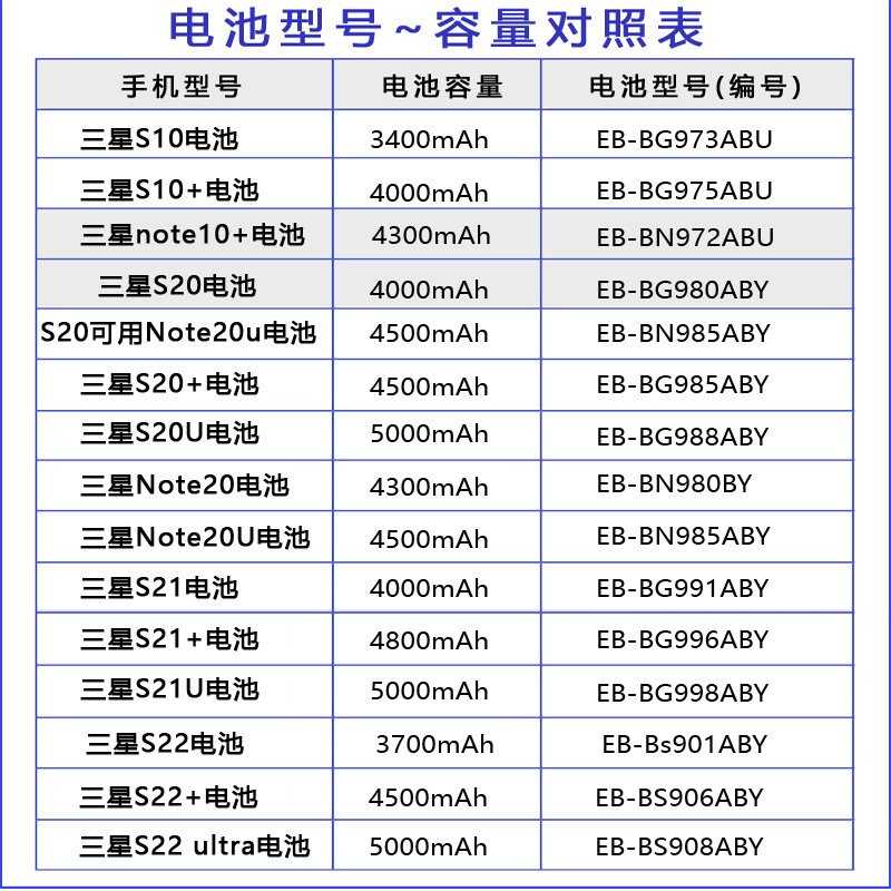 适用三星S20 S21 S23u原装电池S22ultra Note10+ Note20u S24u