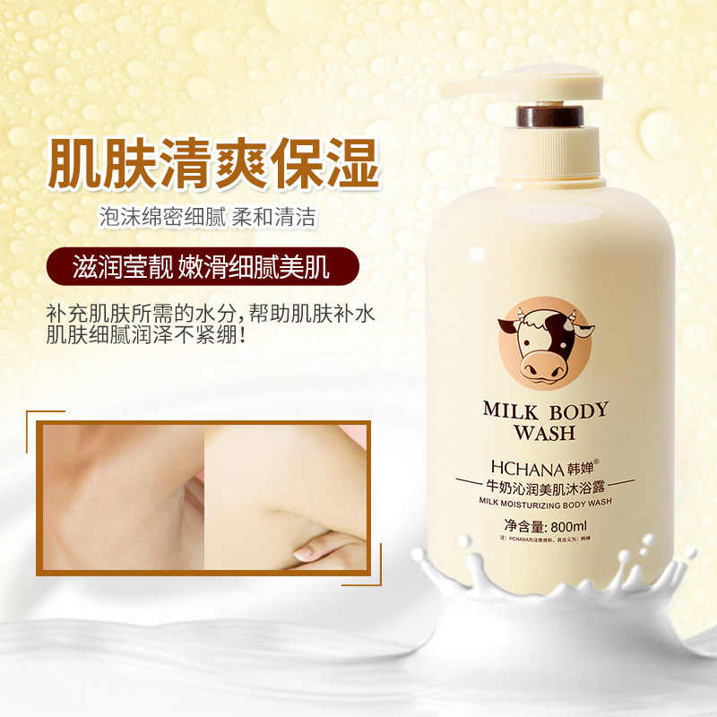韩婵牛奶沐浴露持久留香沫浴乳液清爽洗发水套装男女士通用家庭用