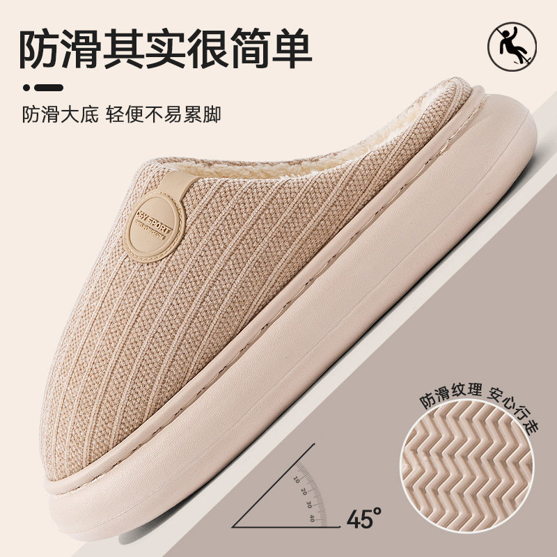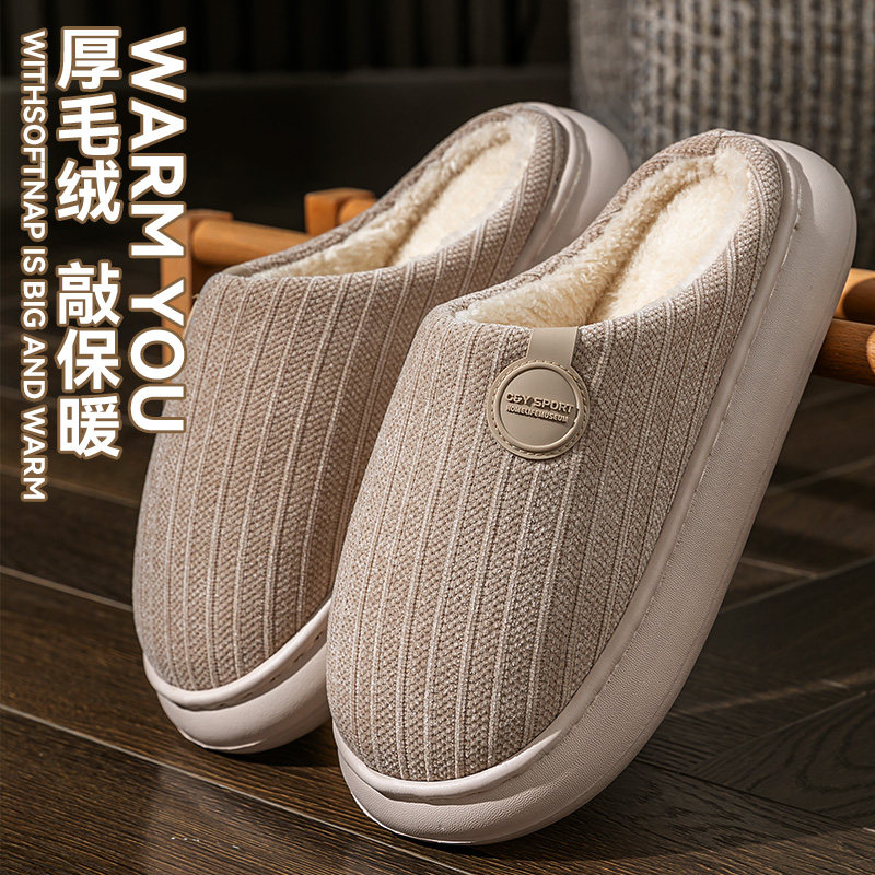 朴西棉拖鞋女士秋冬季厚底简约保暖室内居家用软底防滑情侣棉拖男