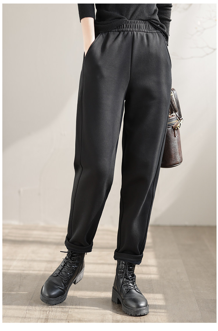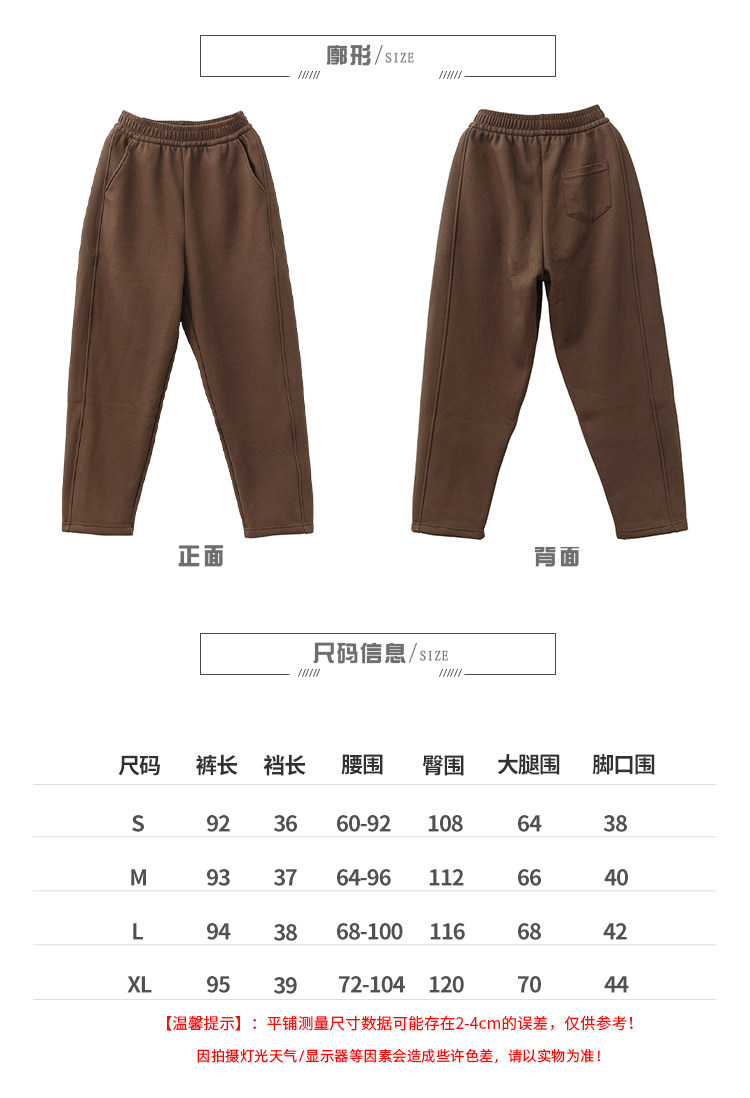 休闲裤冬装新款时尚女士长裤拼接加绒简约洋气裤子女装哈伦裤棉女