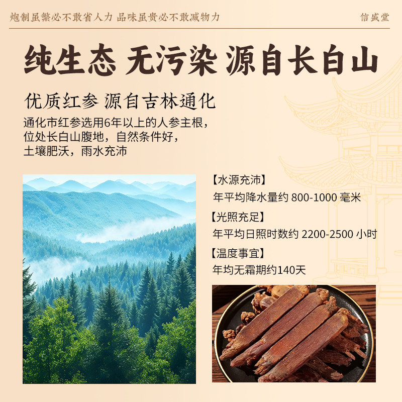 长白山人参无糖红参片吉林中药材补气养血滋补养生特级官方旗舰店