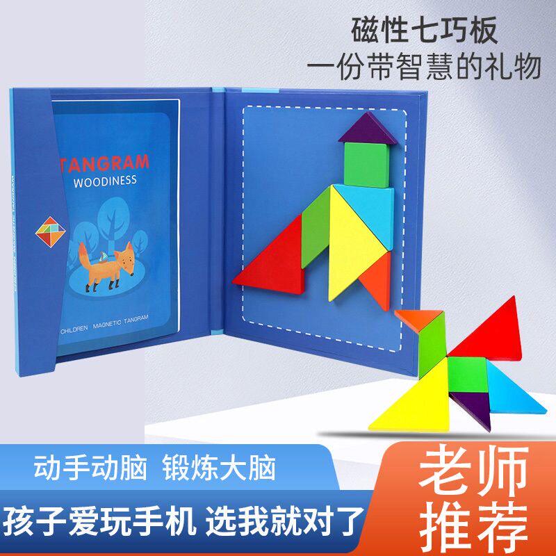 儿童磁性七巧板智力拼图小学生一年级数学教具幼儿园专用益智玩具