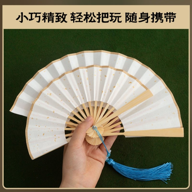 456寸迷你折扇儿童小扇子夏季古风空白宣纸扇面书法文创手工diy题字中式半生熟国画作品玉竹男女随身折叠画扇