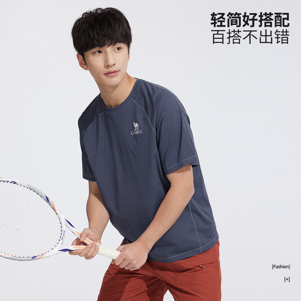 【3A抗菌】骆驼男装圆领T恤男运动夏弹力透气宽松凉感短袖上衣男