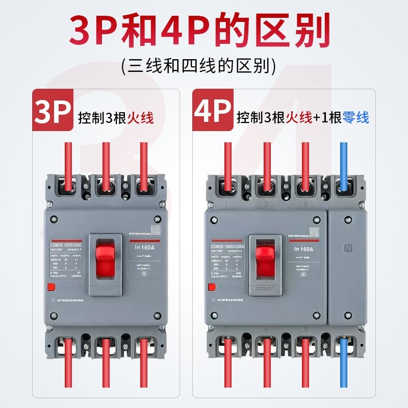 德力西塑壳断路器CDM3空气开关400A160三相80v四线250漏电3p4p630