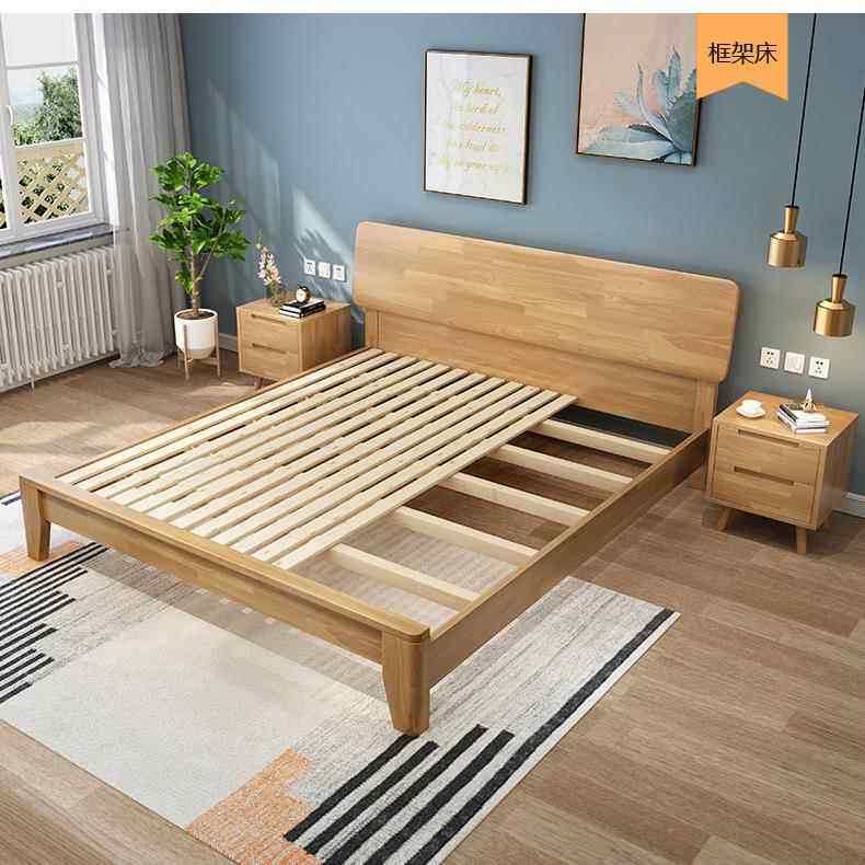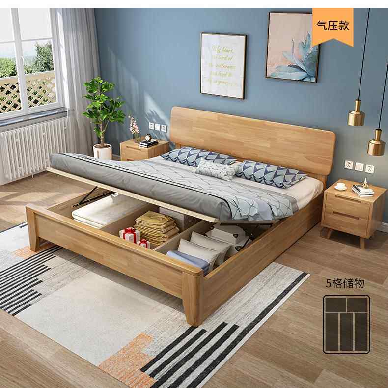 北欧橡胶木实木床1.5M1.8米储物单双人床 现代简约卧室家具婚房床