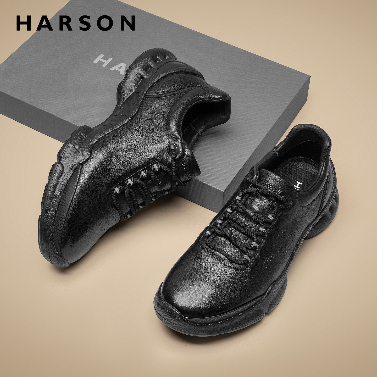 哈森男鞋春季软底男士皮鞋商务休闲鞋低帮真皮全黑公务鞋通勤鞋子