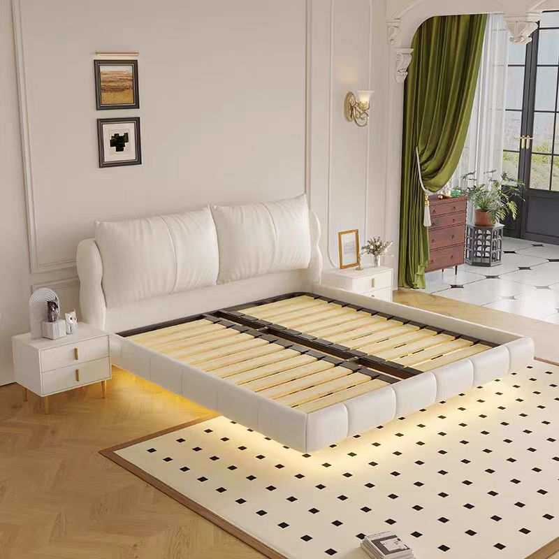 悬浮床带灯轻奢简约法式奶油风皮艺床双人床主卧室实木婚床泡芙床