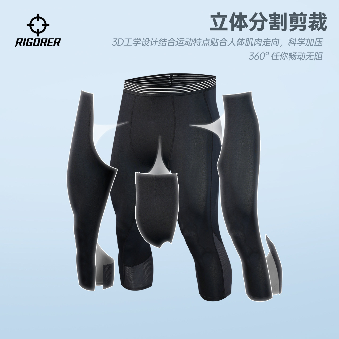 准者紧身裤男夏季新款专业篮球训练高弹压缩裤跑步运动健身七分裤
