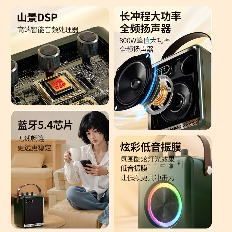 华宝户外广场舞音响蓝牙新款音箱便携话筒K歌一体机小型低音炮