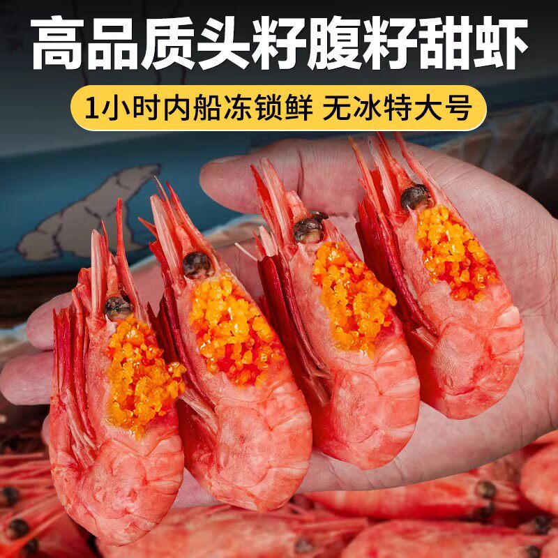 北极甜虾北极熊北极虾刺身腹籽特大冰虾新鲜冷冻海鲜水产鲜活速冻