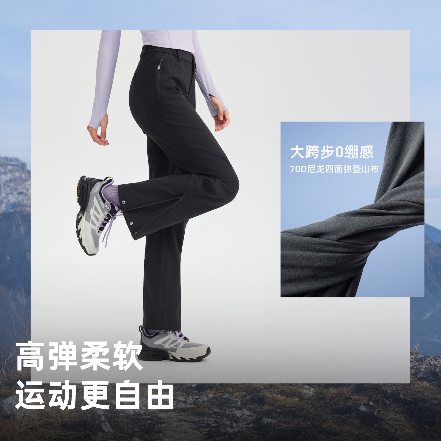 蕉下男士直筒软壳裤户外休闲裤子动态腰头防泼水登山徒步加绒保暖