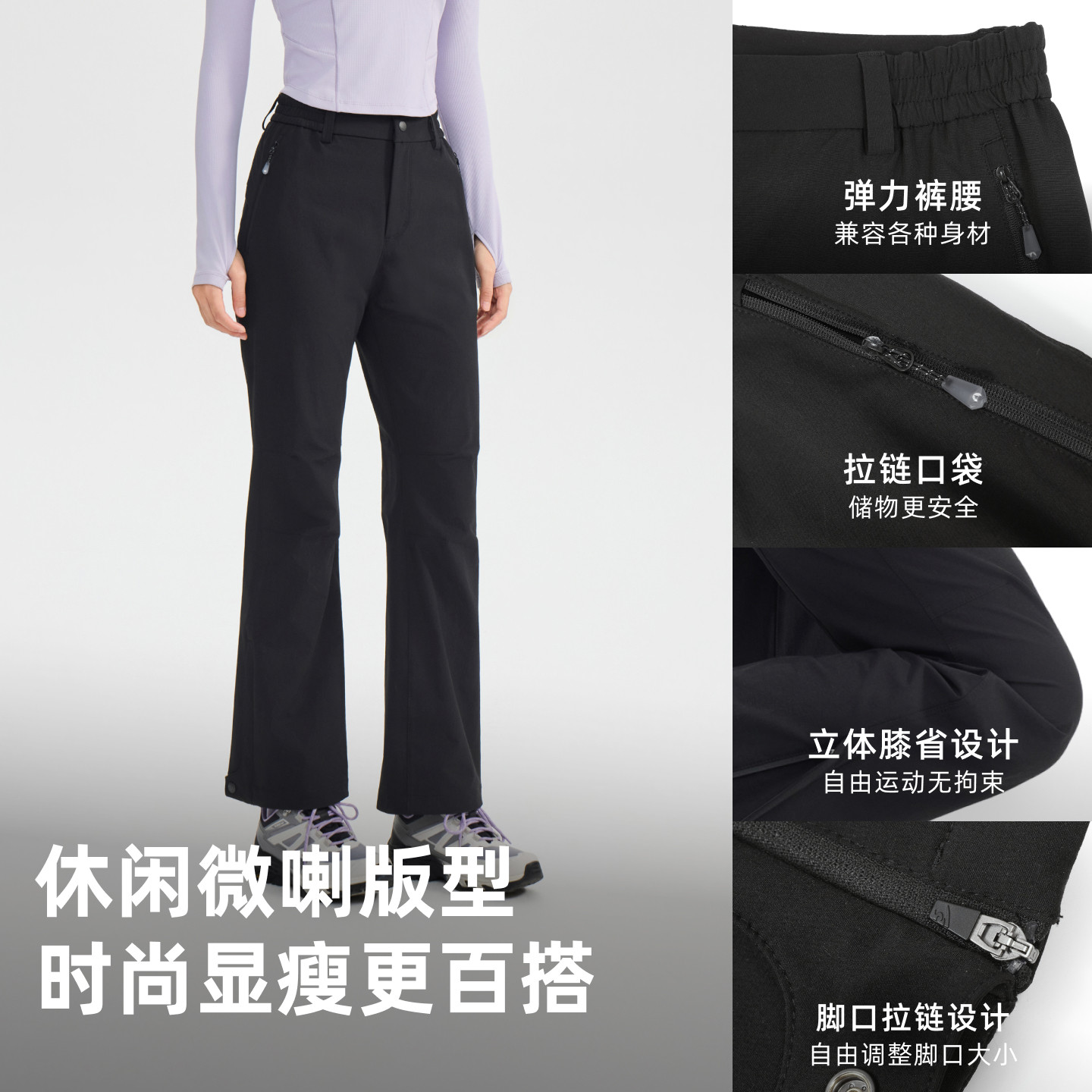 探路者户外徒步长裤女防泼弹力耐磨抗造时尚显瘦通勤百搭喇叭裤