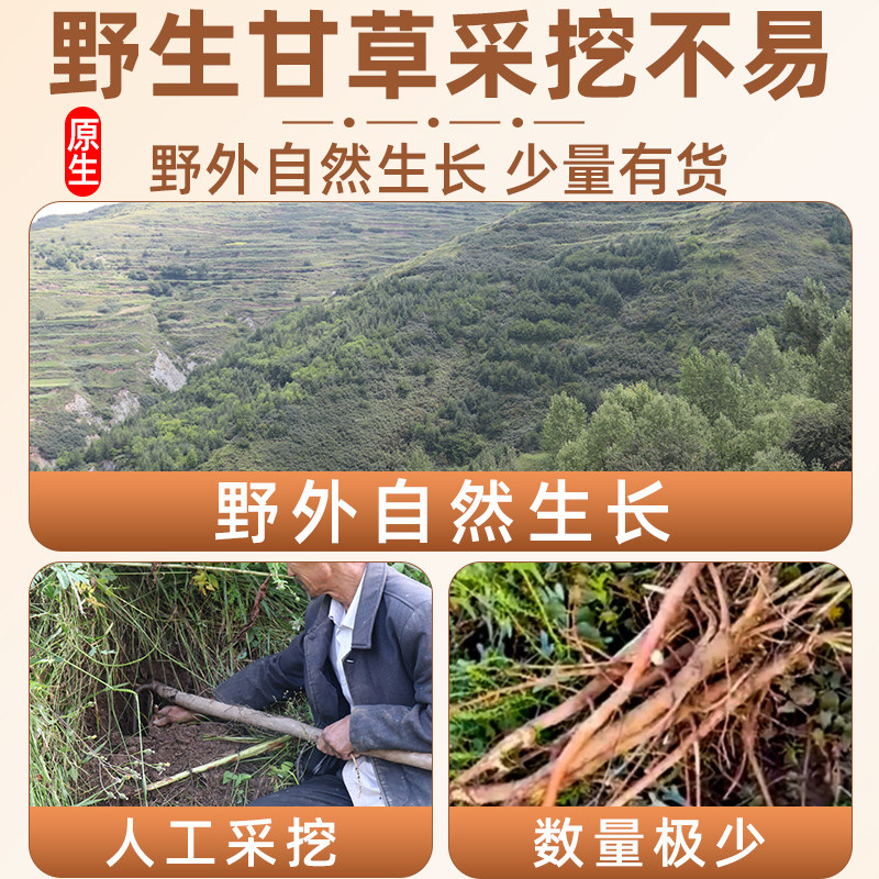正宗甘肃30年大甘草片中药材生甘草野生老甘草特级红皮甘草茶干草