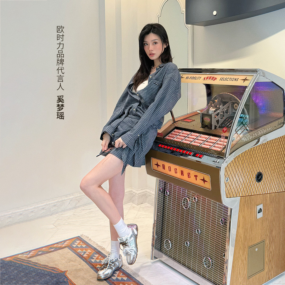 【新品】奚梦瑶同款 欧时力半身裙2026春精梳棉格子蝴蝶结a字短裙