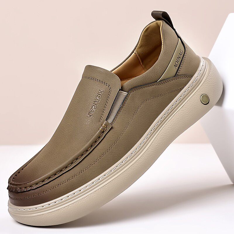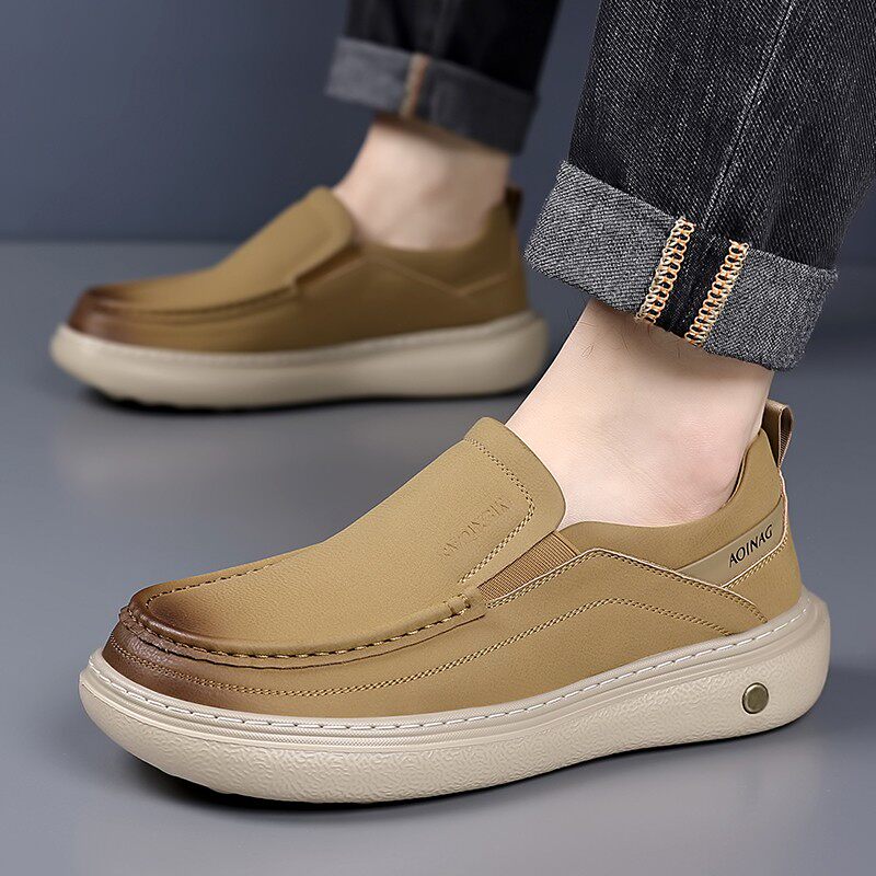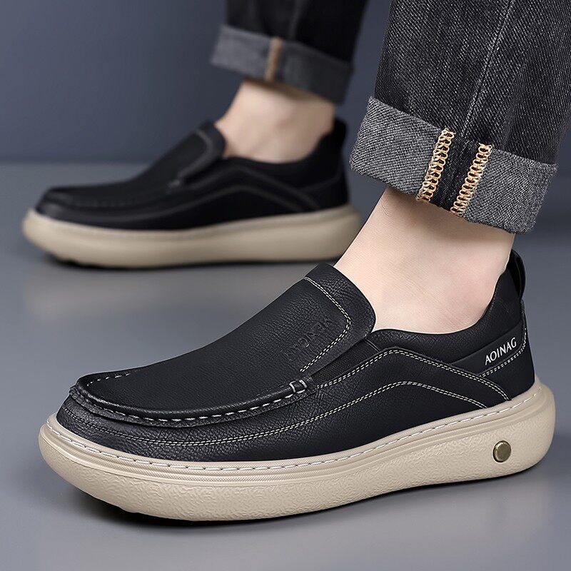 真皮男款春季一脚蹬头层牛皮乐福鞋夏季商务软底休闲豆豆鞋黑色