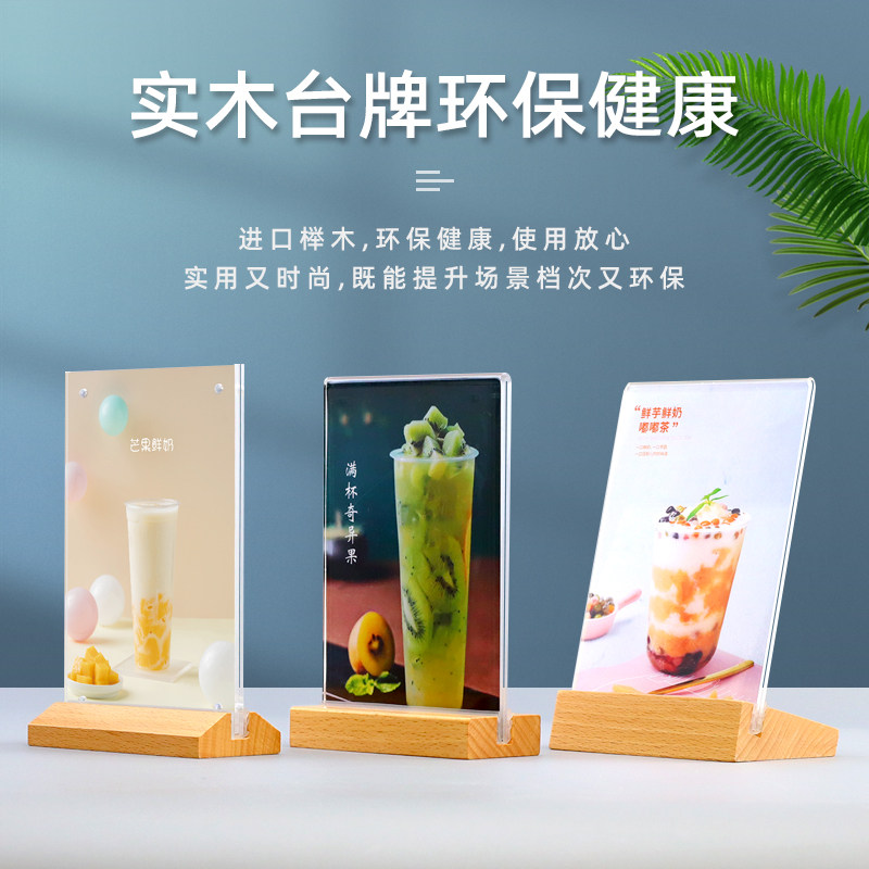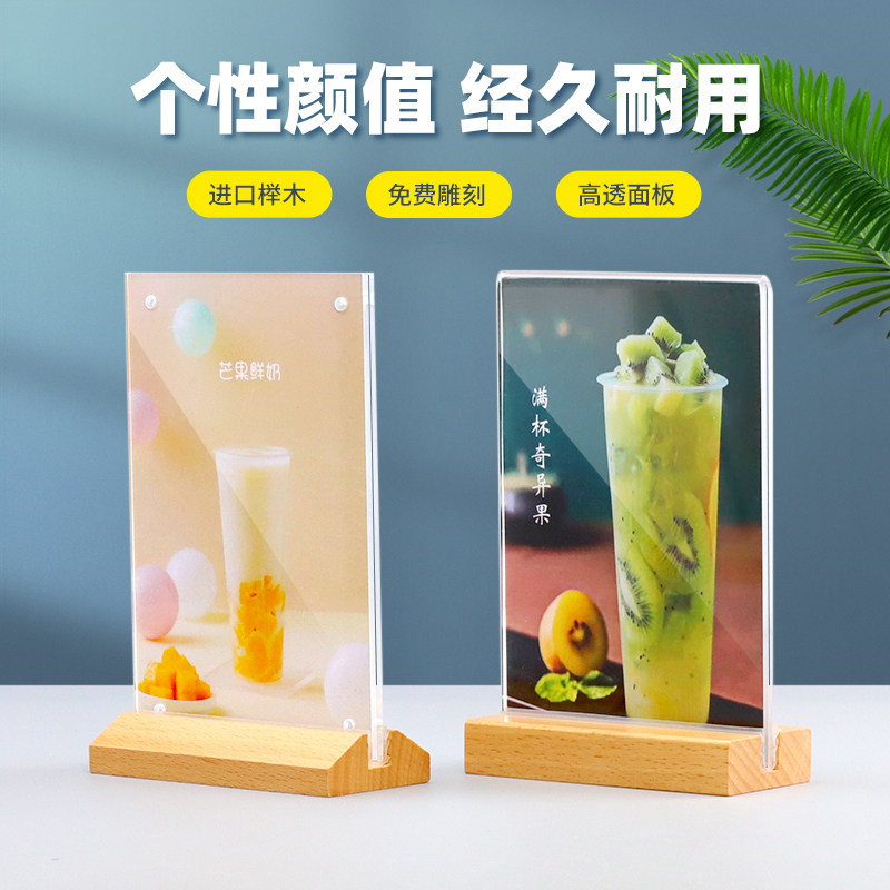 a4亚克力台卡架桌面奶茶店菜单价格展示牌木制广告牌餐桌牌桌签二维码立牌桌牌台牌台签新品推荐摆台刻字定制