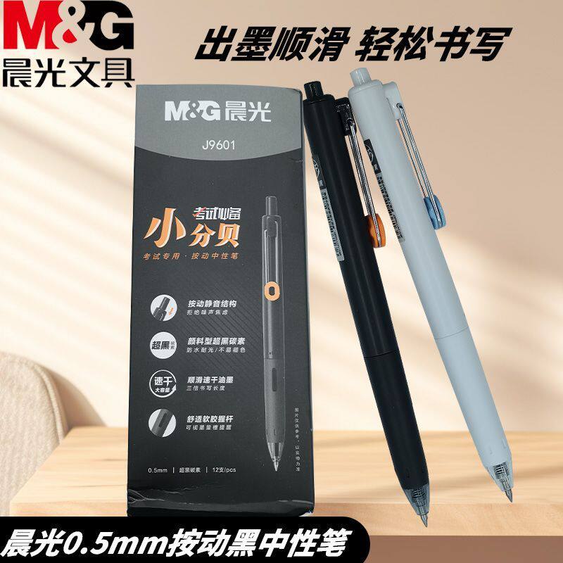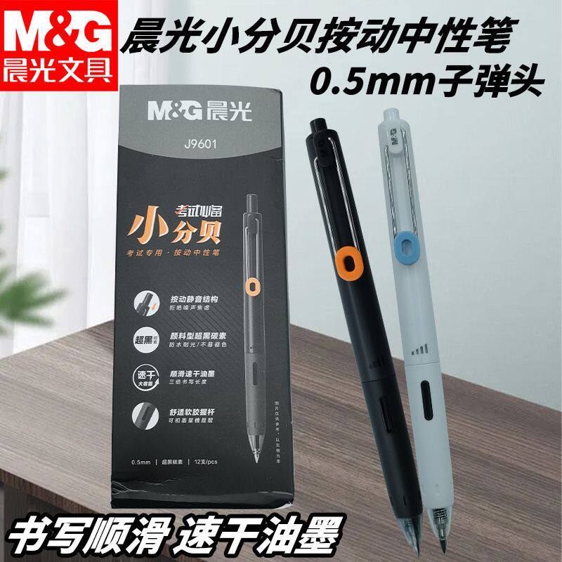 晨光按动中性笔考试小分贝AGPJ9601速干0.5子弹头软胶握感书写用