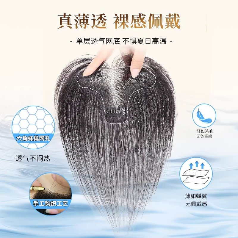 假刘海真发发片轻薄胎毛刘海自然前额头顶补发假发片发际线假发贴