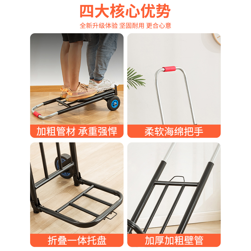 艇堡品牌折叠手拉车家用拖车买菜购物车快递拉车搬家拉货便携推车