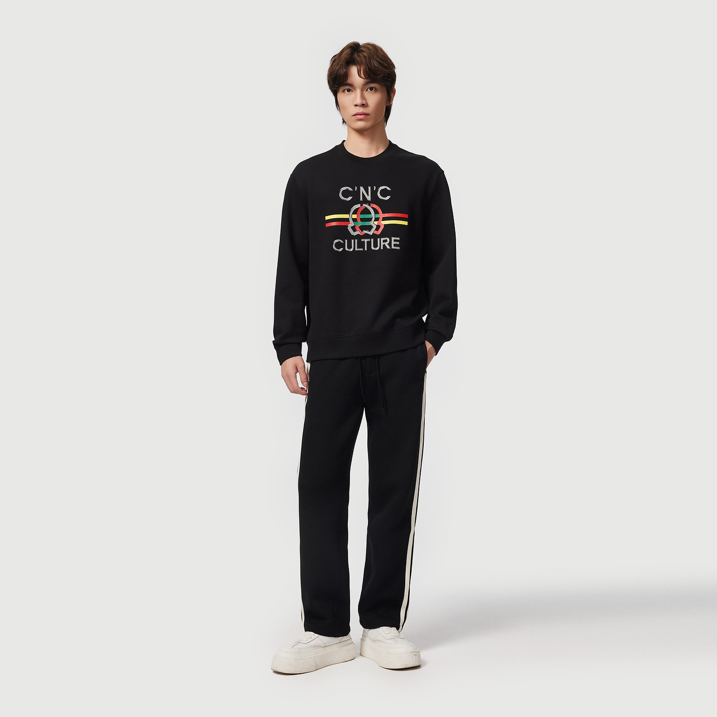 CNC男装奥莱大logo印花圆领男士长袖卫衣秋季新款休闲轻奢打底衫