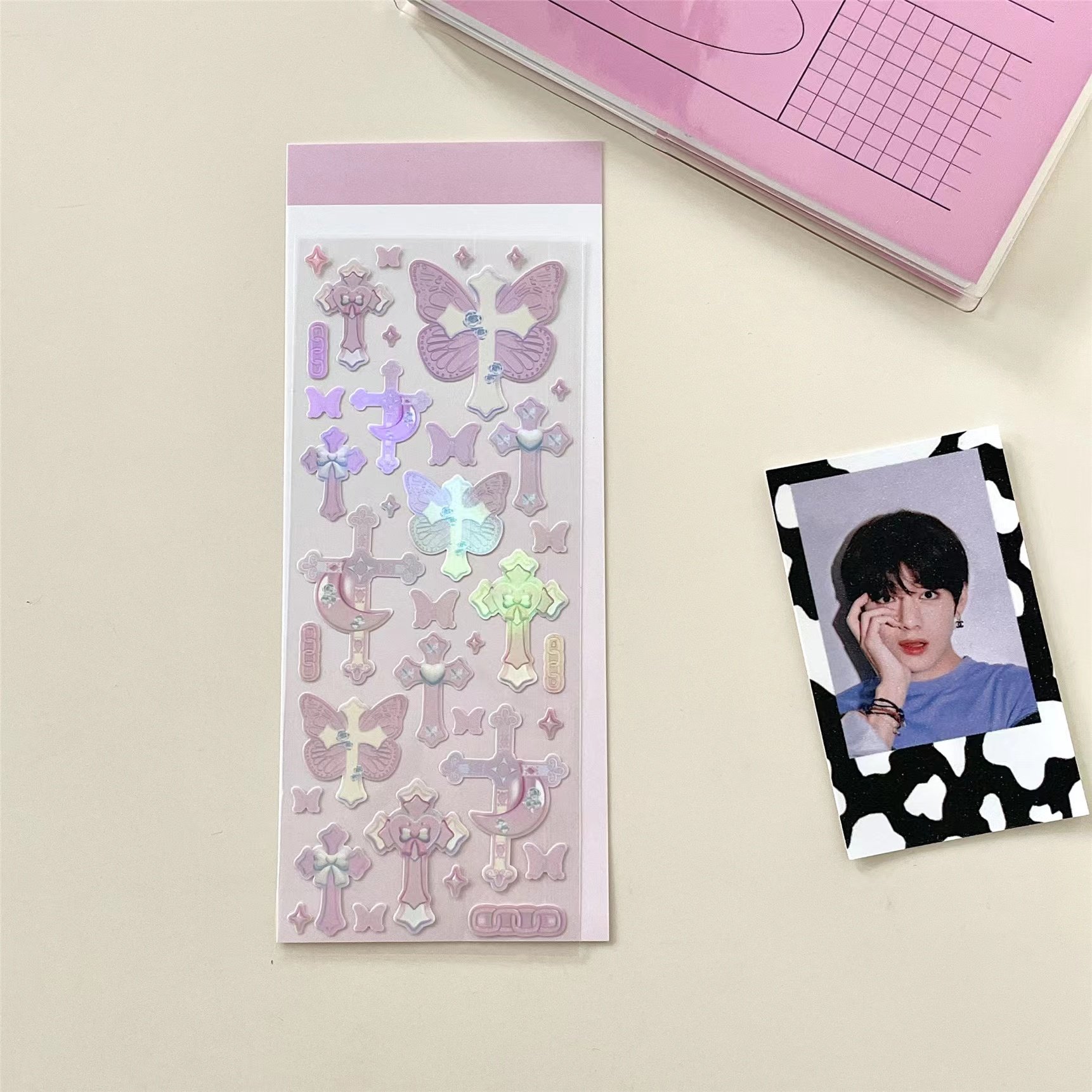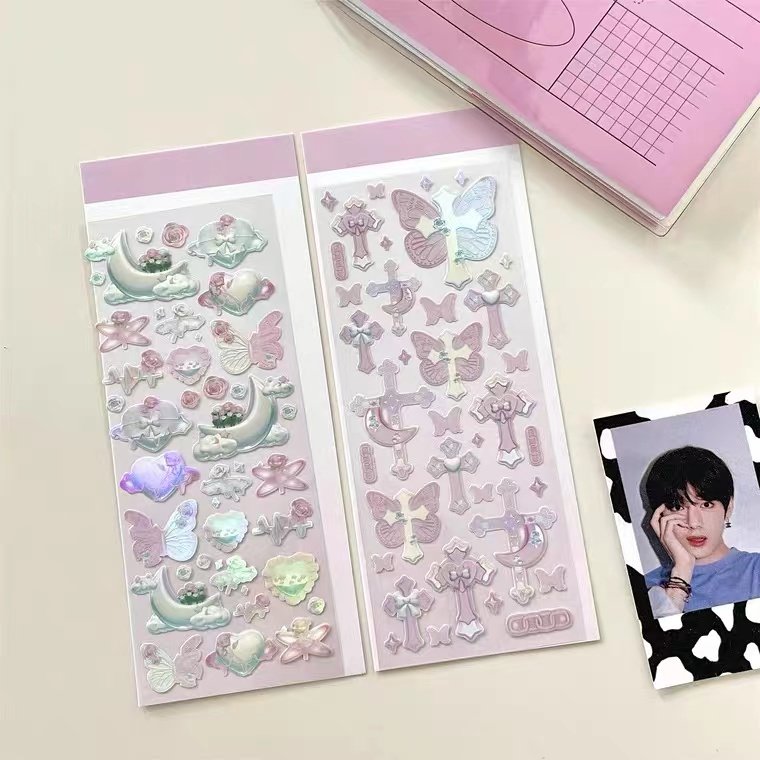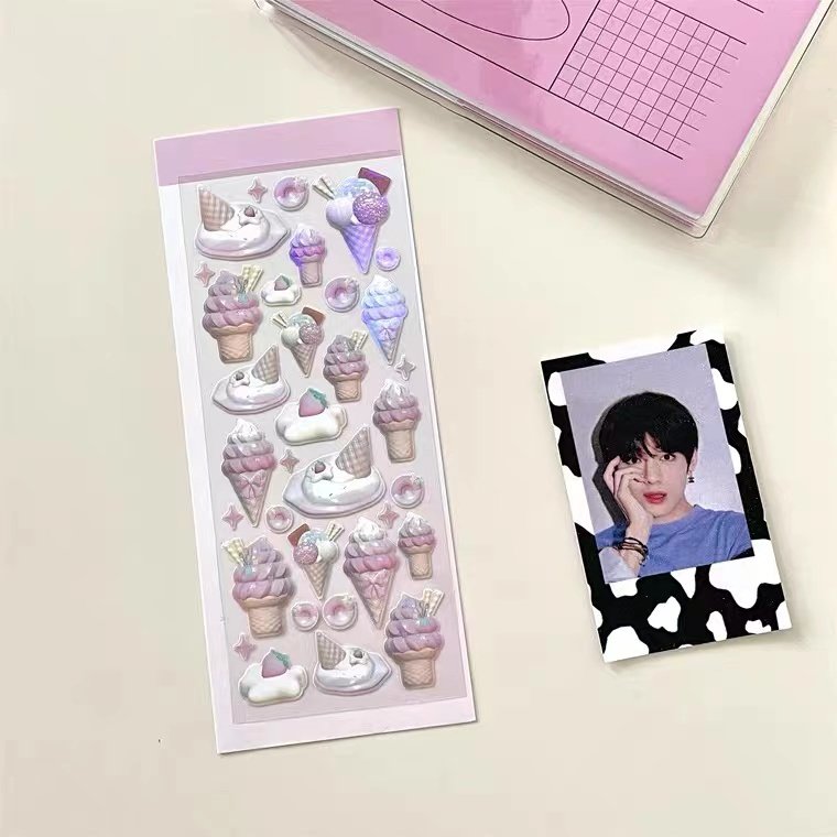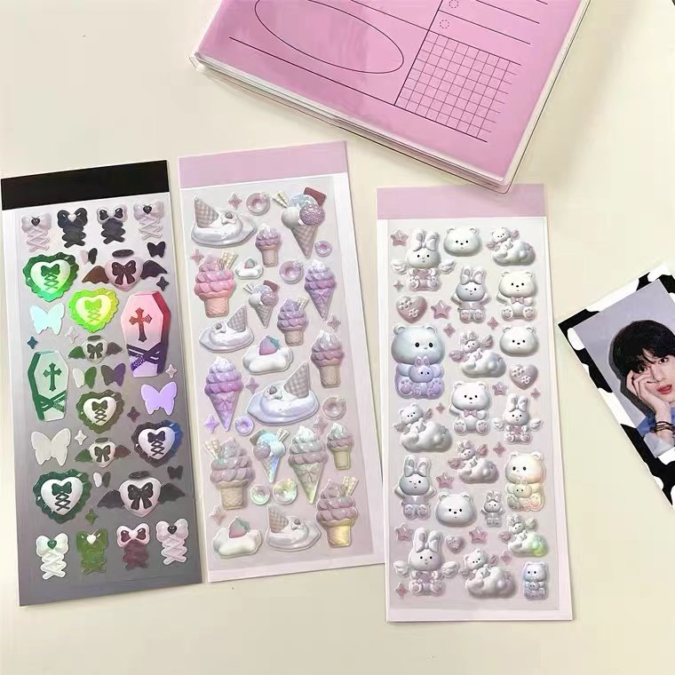 国产原创冰淇淋小熊3D镭射咕卡贴纸diy手帐估卡咕盘爱豆小卡装饰