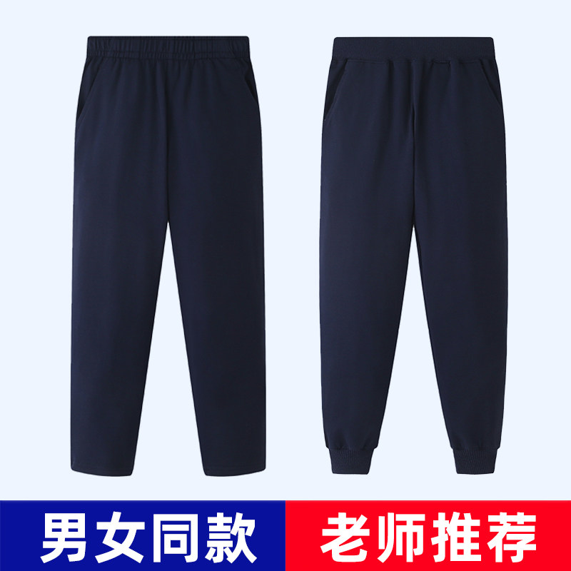 儿童校服裤子藏青色中小学生男童女童深蓝加绒春秋中大童运动长裤