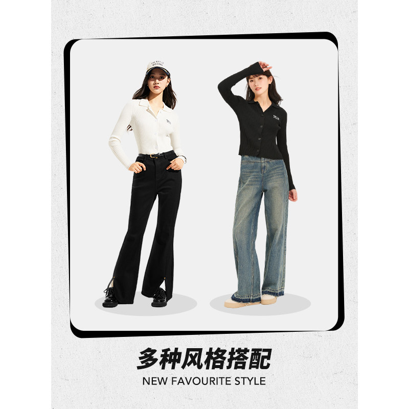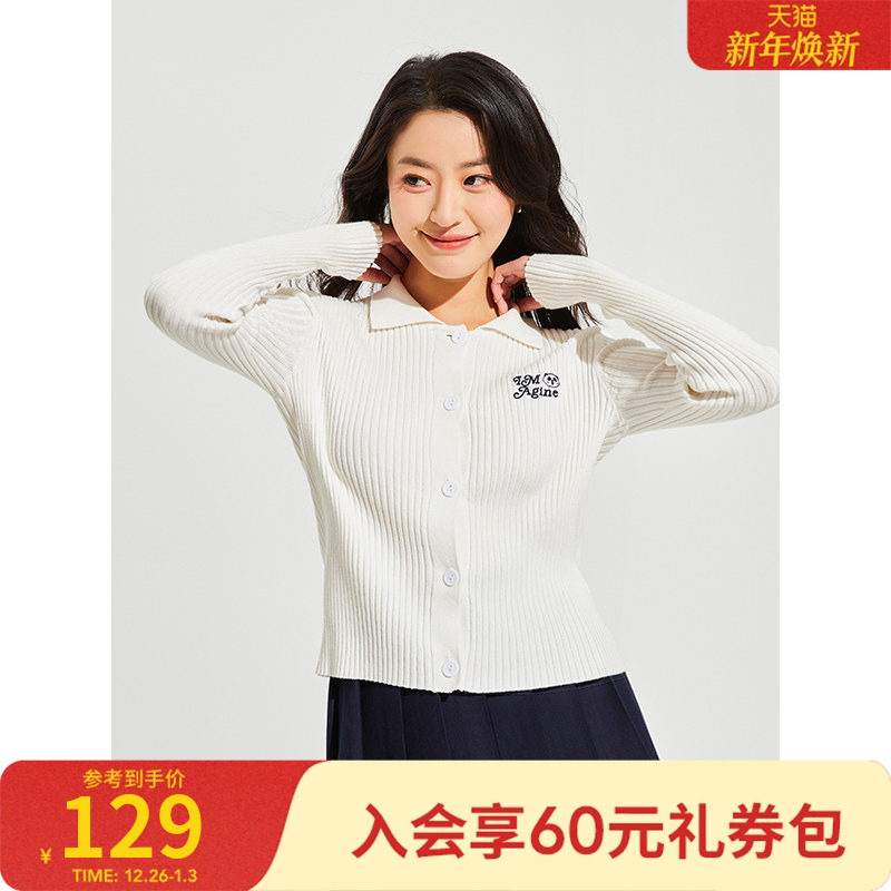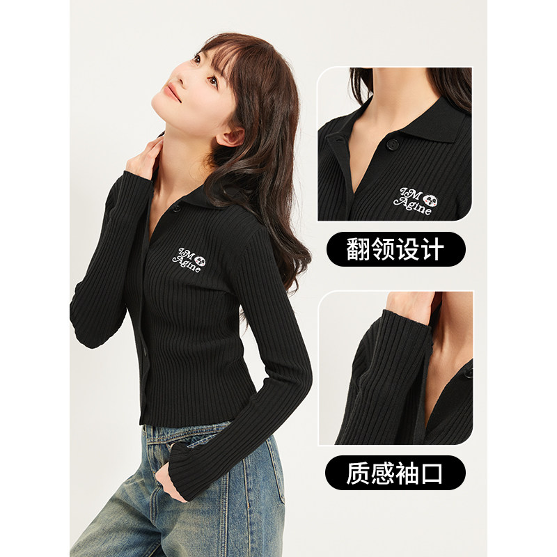 【熊猫设计师系列】热风2025年春季新款女士卡通翻领修身针织开衫