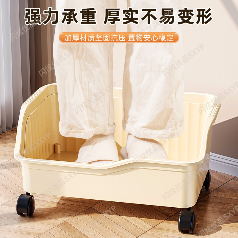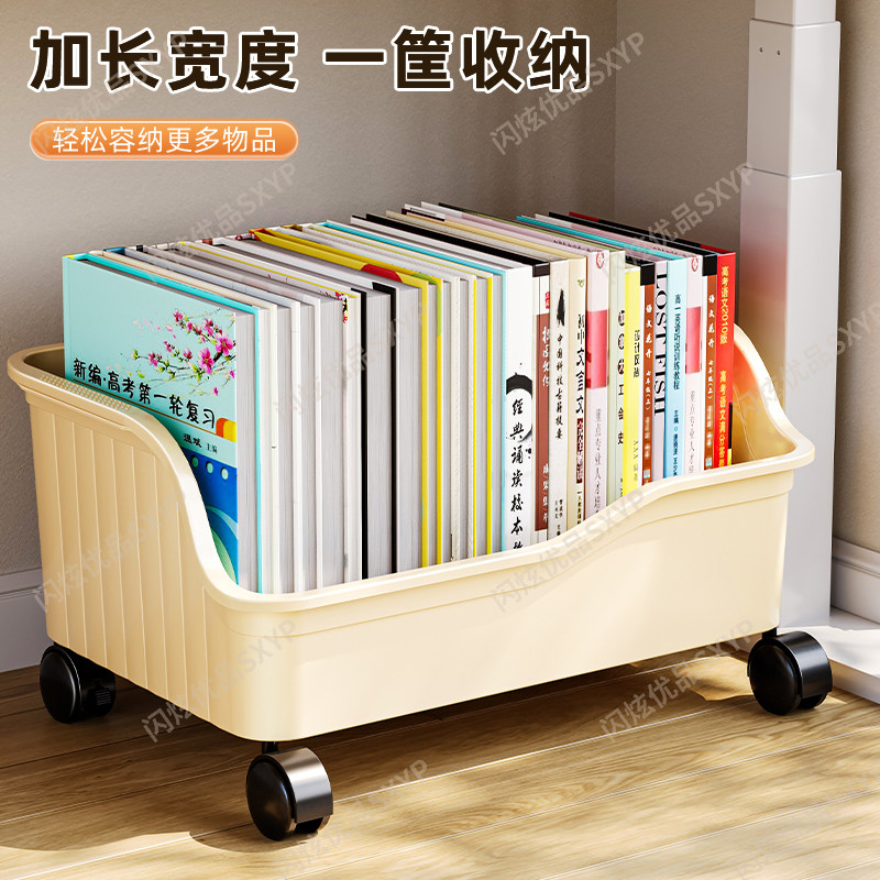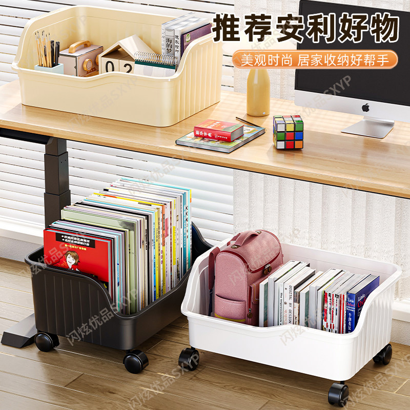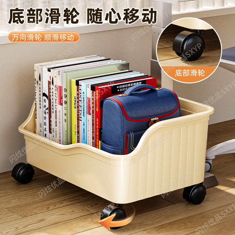 桌下书包置物架带滑轮可移动落地书本收纳箱学生教室整理神器超大