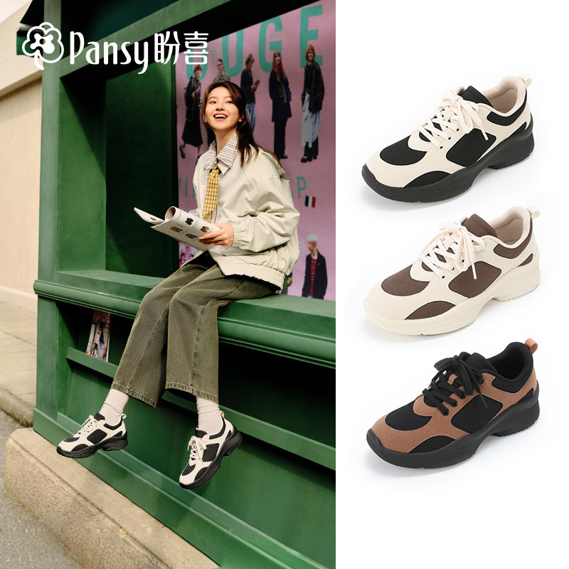 Pansy盼喜日本运动休闲鞋女百搭超轻舒适厚底老爹鞋2025新款