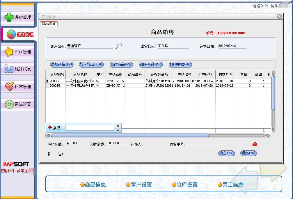 美萍医疗器械进销存销售管理系统一类二类三类药监局GSP验收软件