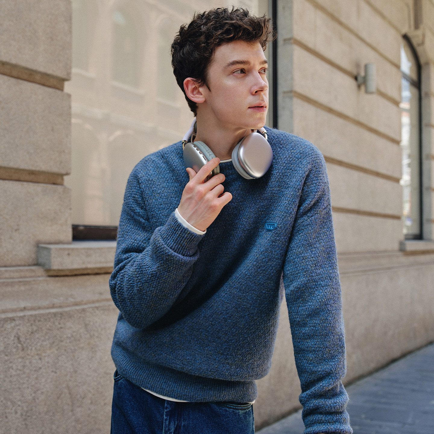 Navigare意大利小帆船中长款圆领针织衫男士2025秋冬新款保暖毛衣