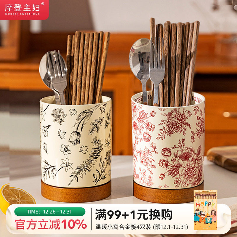 摩登主妇台面筷子筒家用筷笼子高档新款高颜值陶瓷沥水筷勺收纳盒