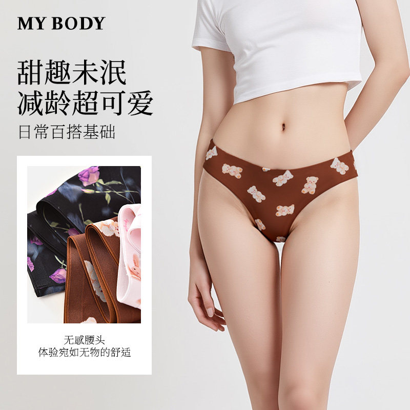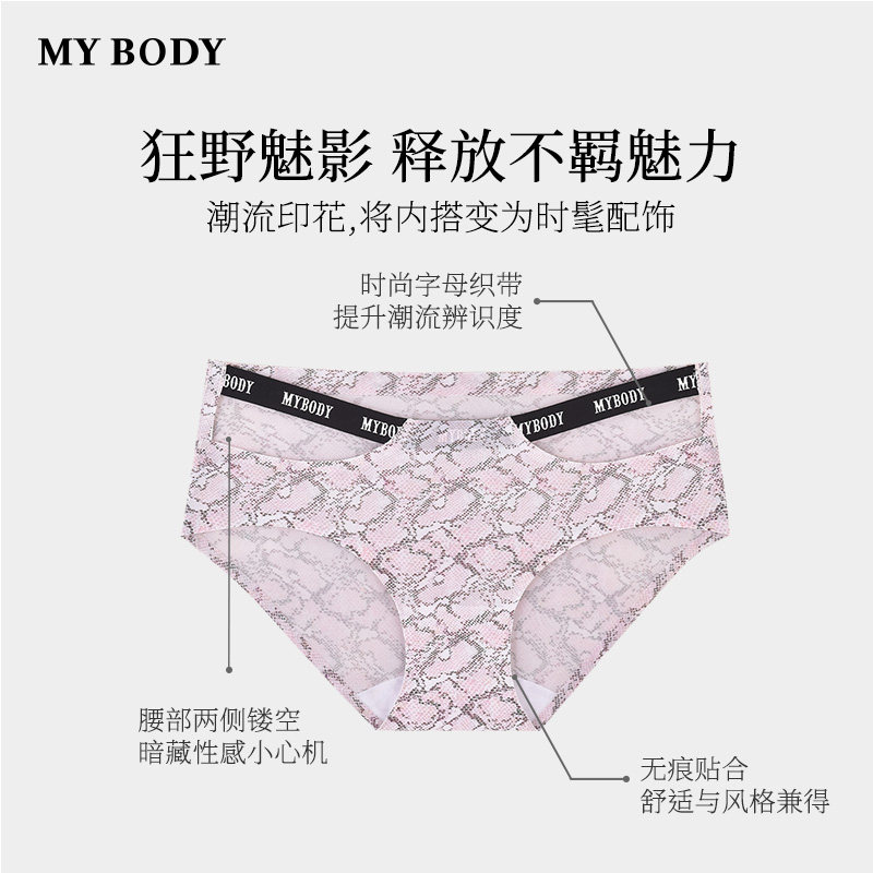 3件129|商场同款MYBODY内裤女时尚可爱萌宠印花无痕低腰三角内裤