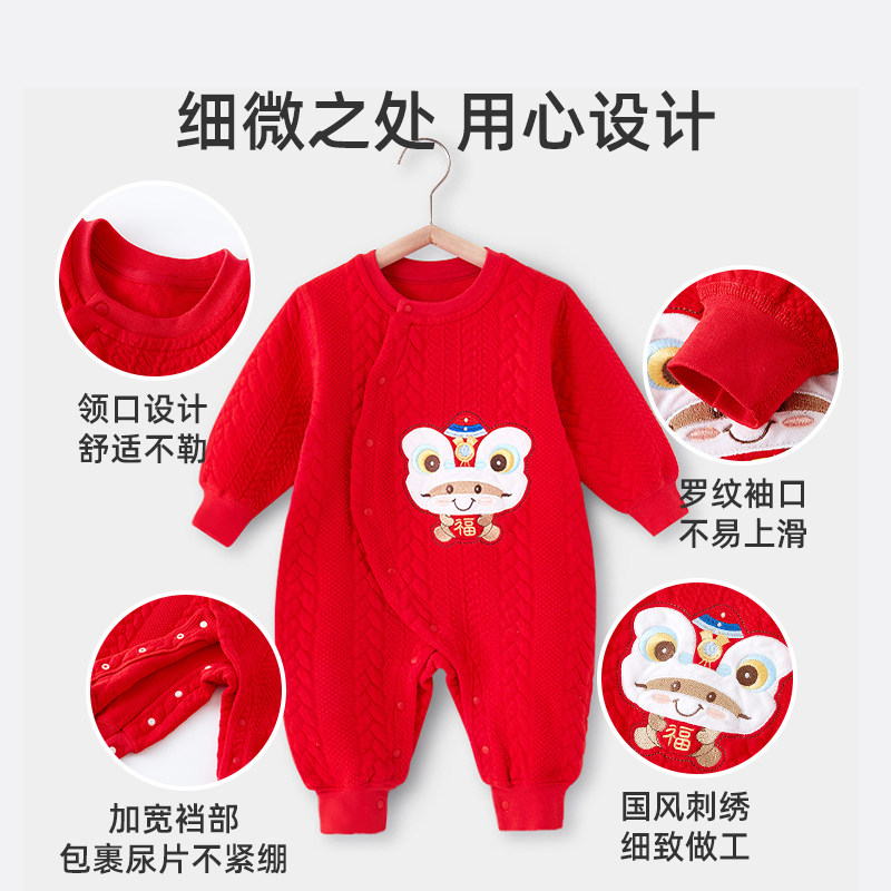 婧麒婴儿衣服冬装夹棉冬季红色连体衣满月百天新生宝宝喜庆拜年服