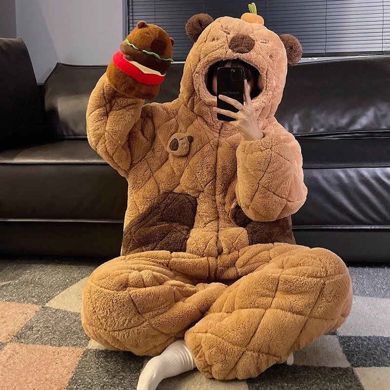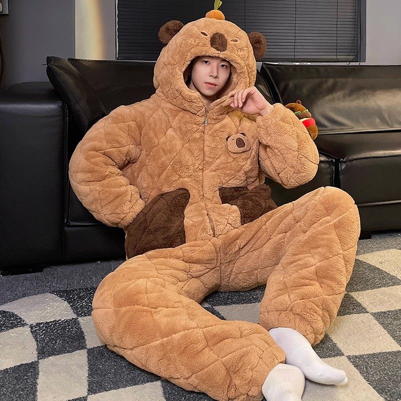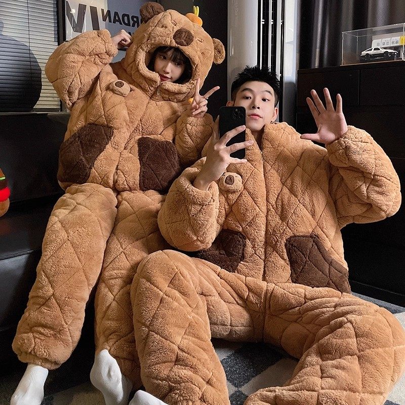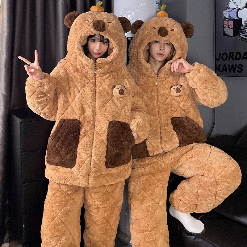 2025情侣睡衣女冬季加绒加厚珊瑚绒三层夹棉男士秋冬款家居服可爱