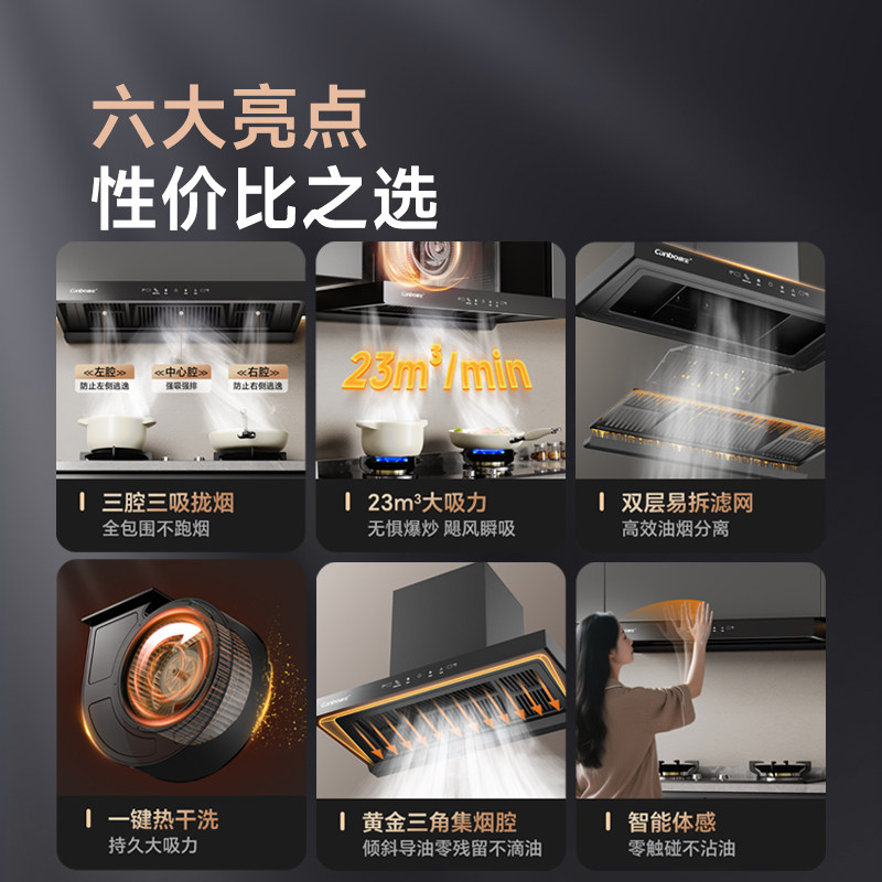 康宝BET223新款抽油烟机挂式智能清洗家用厨房大吸力官方旗舰店