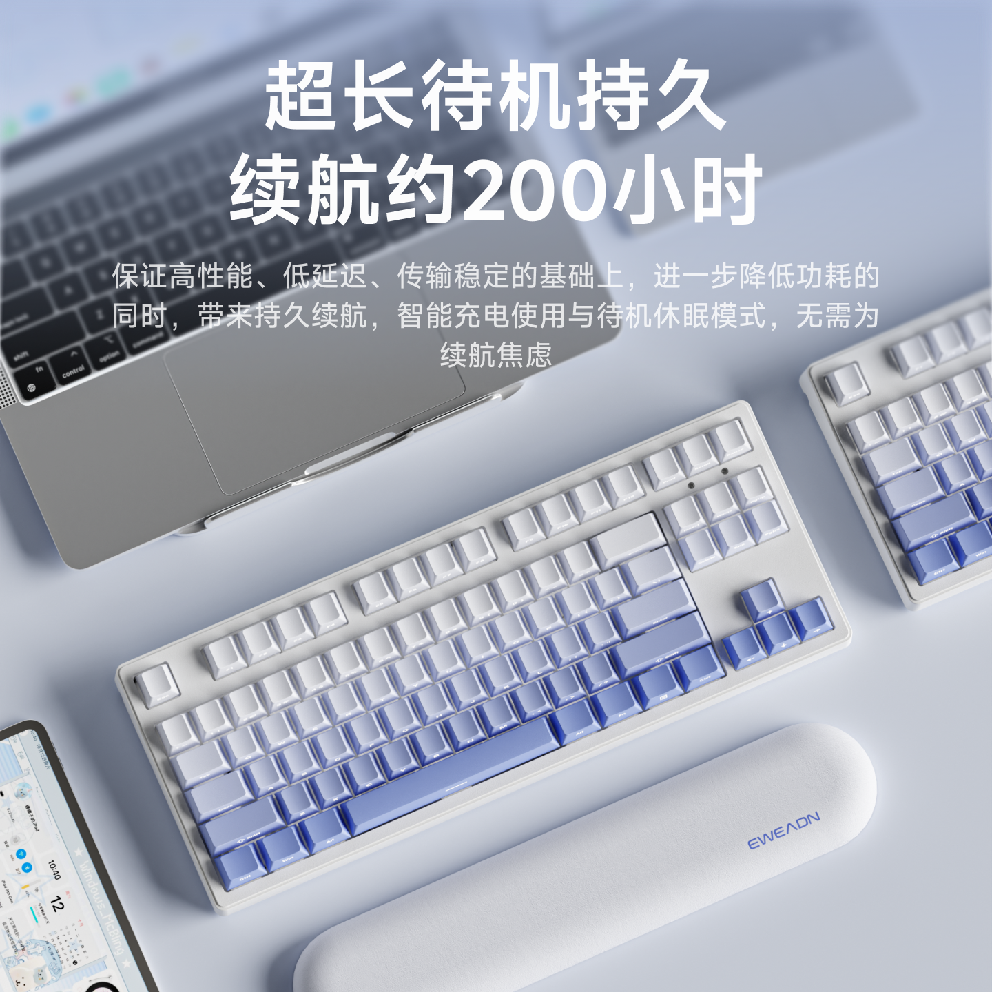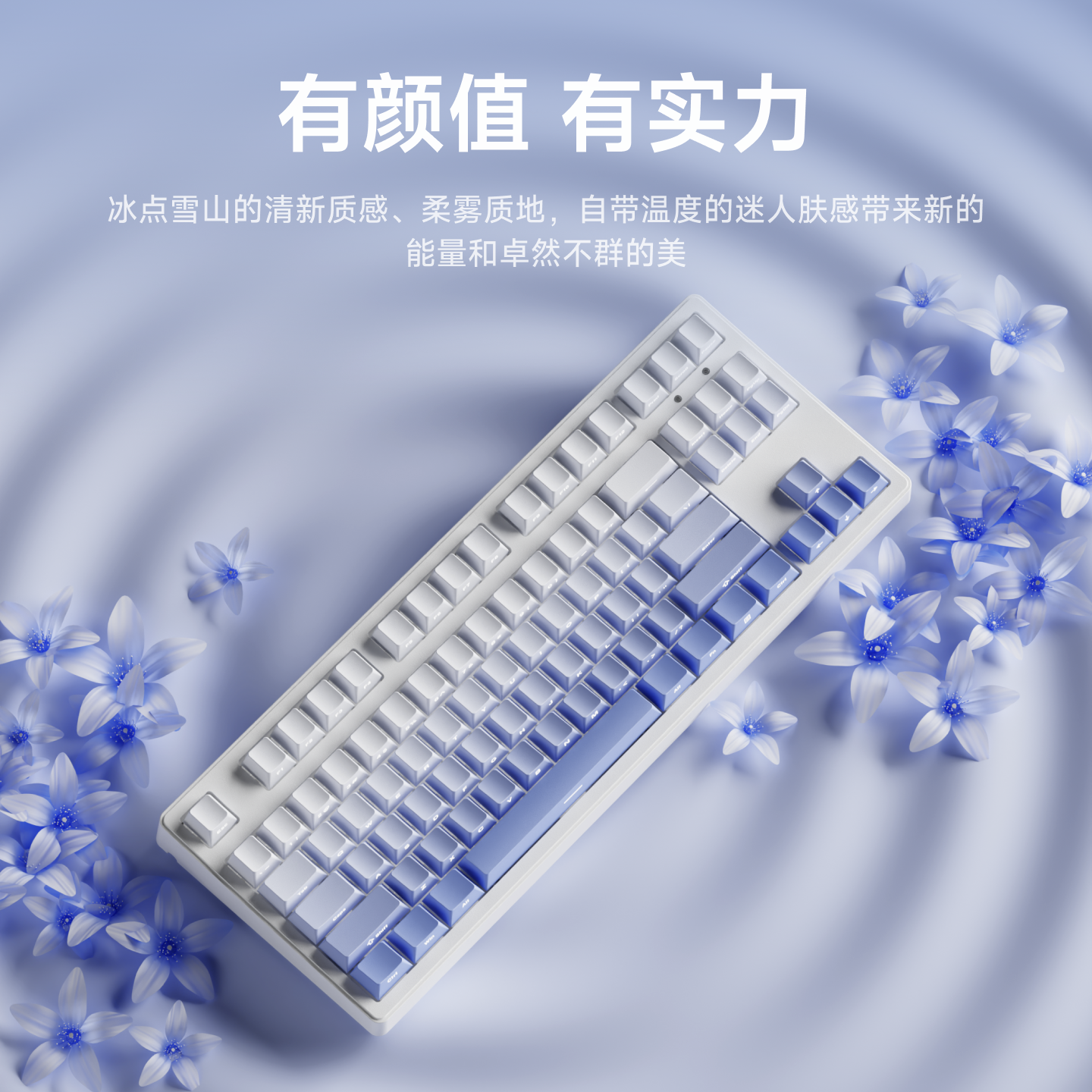 前行者MT87冰岛蓝机械键盘无线蓝牙侧刻女生办公专用鼠标套装茶轴