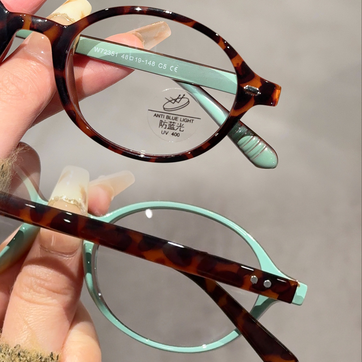 韩式玳瑁小椭圆眼镜近视女可配高度数书呆子平光超轻豹纹眼睛框架