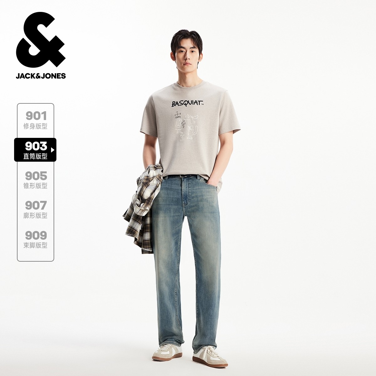 杰克琼斯奥特莱斯男装士牛仔裤2025年做旧水洗休闲直筒裤子长裤