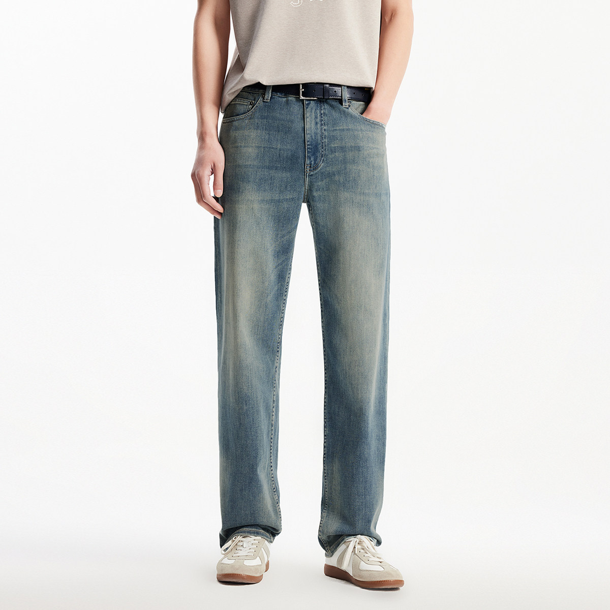 森柔牛仔森马牛仔裤男款2025新直筒裤长裤原色复古美式水洗宽松潮