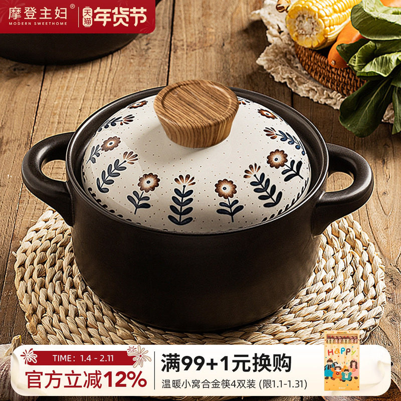 摩登主妇砂锅煲炖锅家用耐高温干烧不裂煲汤锅燃气灶专用陶瓷沙锅