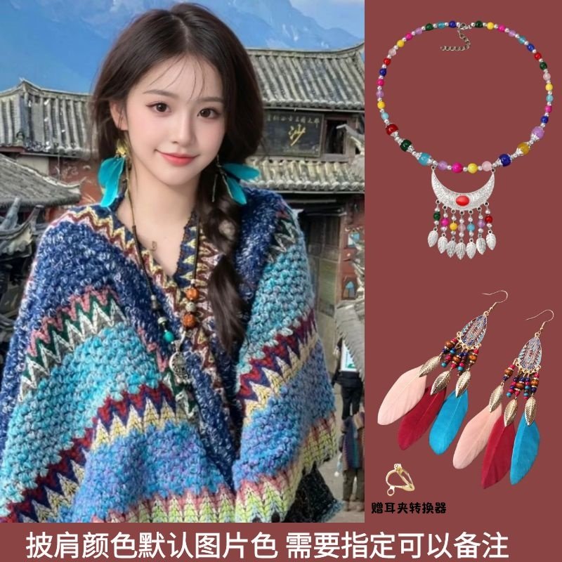 民族风披肩云南丽江旅游穿搭新疆西藏针织斗篷披风外搭围巾女外套