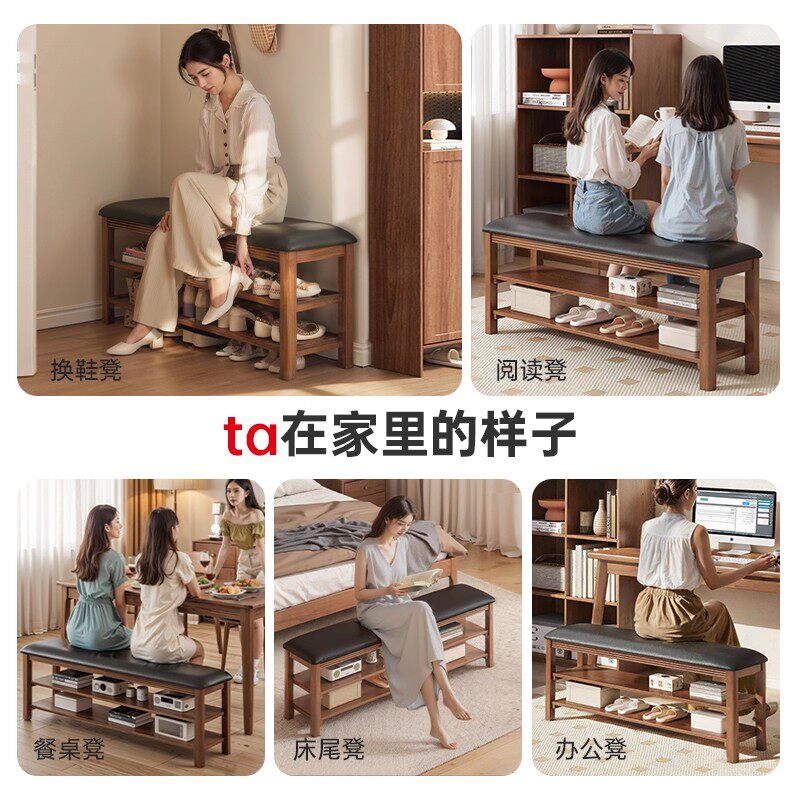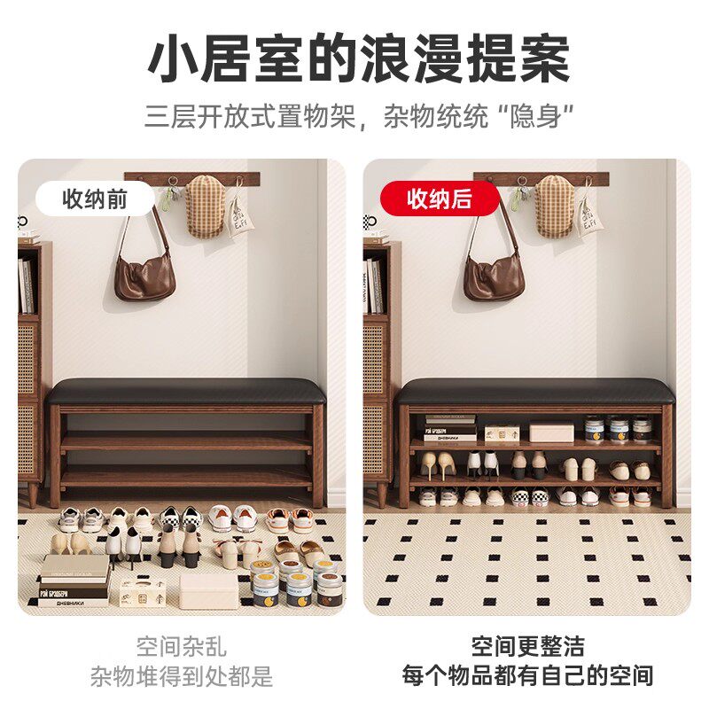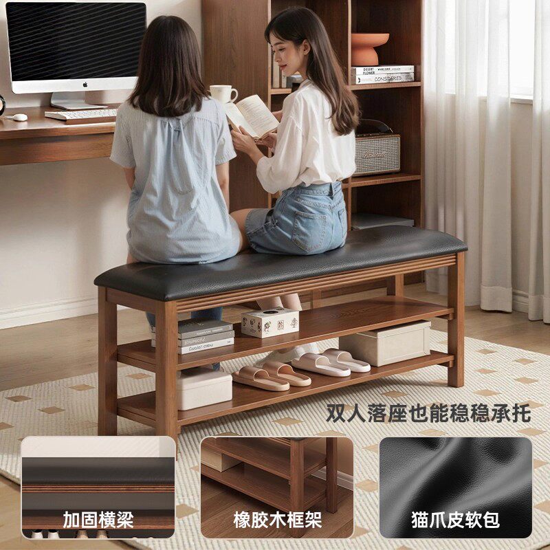 实木换鞋凳中古风家用门口收纳架入户可坐长条凳子玄关窄边鞋架子