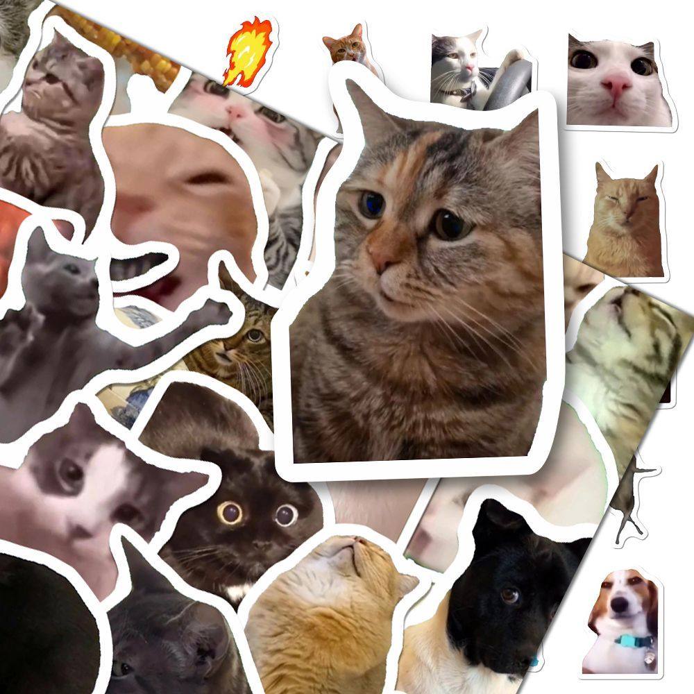 101张网红搞笑猫猫meme表情包贴纸趣味发疯梗图diy装饰手机壳防水